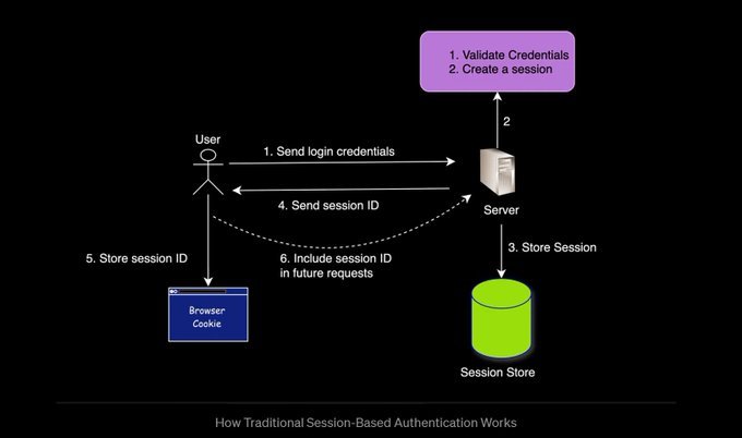 آليته بتبدأ انك اول ما تسجل دخول لحسابك بيكون في جدول للsessions متكوّن عندك في قاعدة البيانات، الserver بيعملك (session id) خاص بيك وبيبعتهولك عشان يتخزن عندك في الcookies فأي طلب بيتبعت منك بيكون معاه الcookies جوا الHeaders اللي بتروح للسيرفر، واللي بدوره بيدوّر عنده في جدول السيشن “أوه ده أنس إعمله اللي هو عايزه يعم”